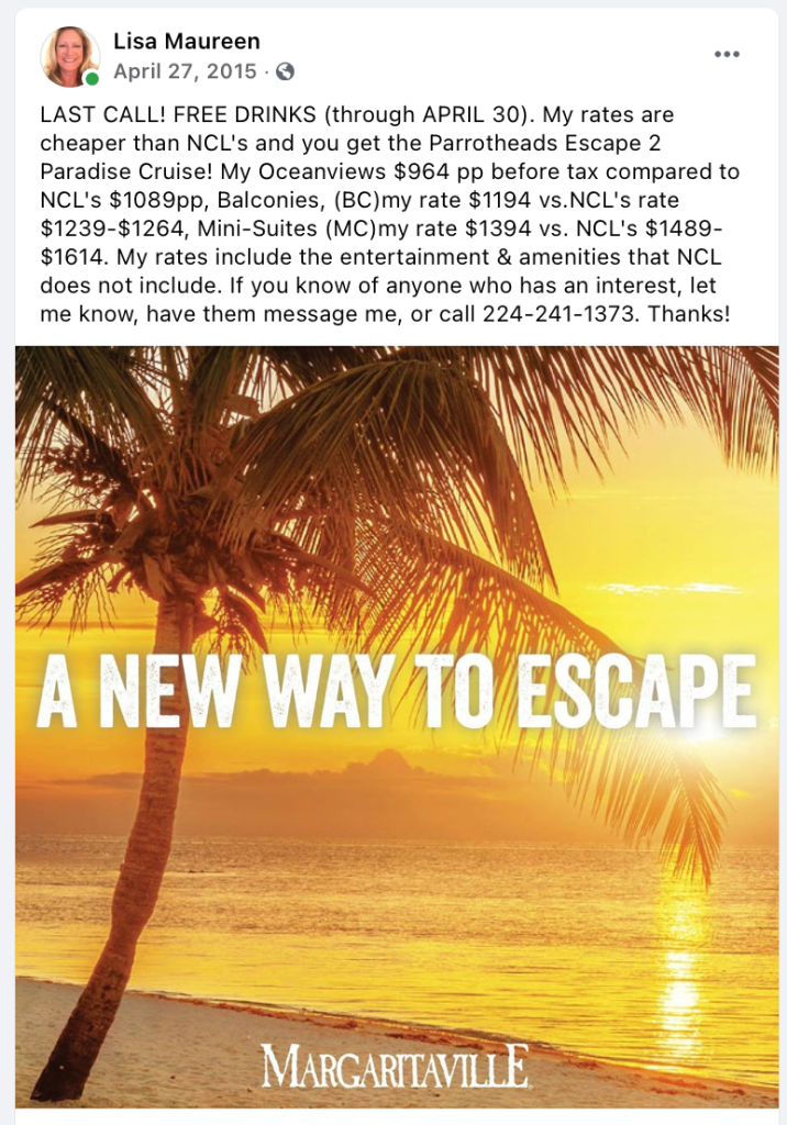 STRATEGY– Interesting content, with a clear call to action across platforms, was presented. The main messenger was Facebook, where I placed paid ads on targeted pages. I also created Facebook groups for every cruise to create relationships/engagement with this group. The analytics supported this strategy.